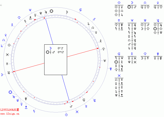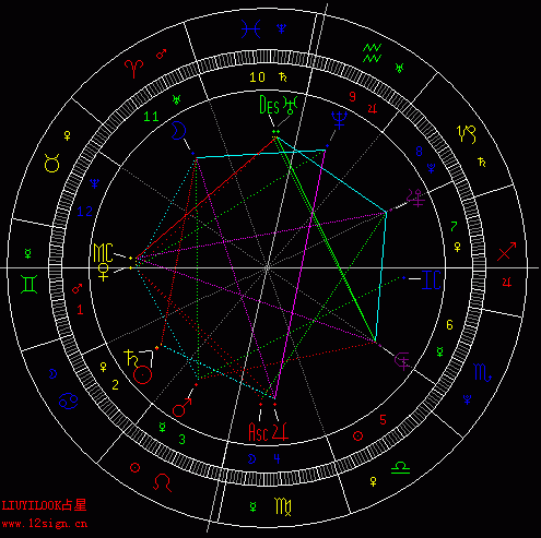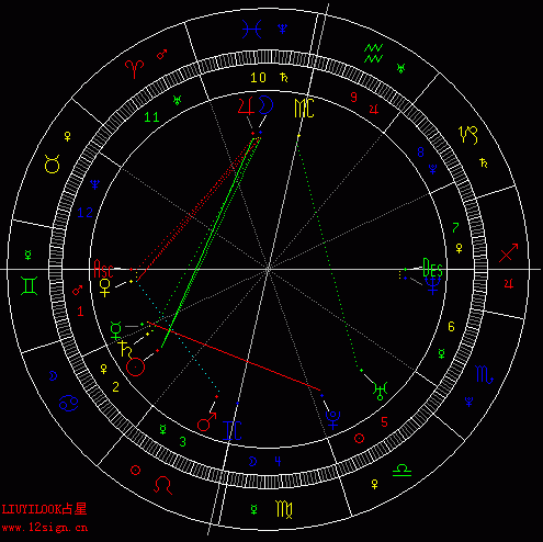 做了太阳返照落入本命的图,开了150度相位,用两颗虚星代替第六宫与第八宫的宫头