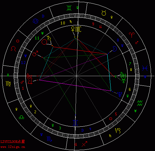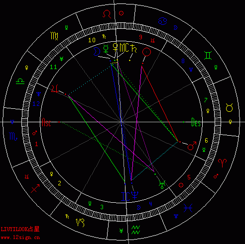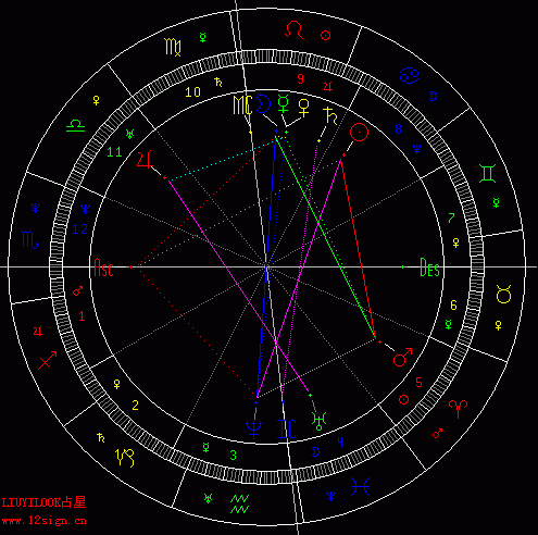 可以看到第七宫的宫头正好合下降,根据反馈盘主也正在离婚,月亮为他的生命主,,落入八宫而且相位不好